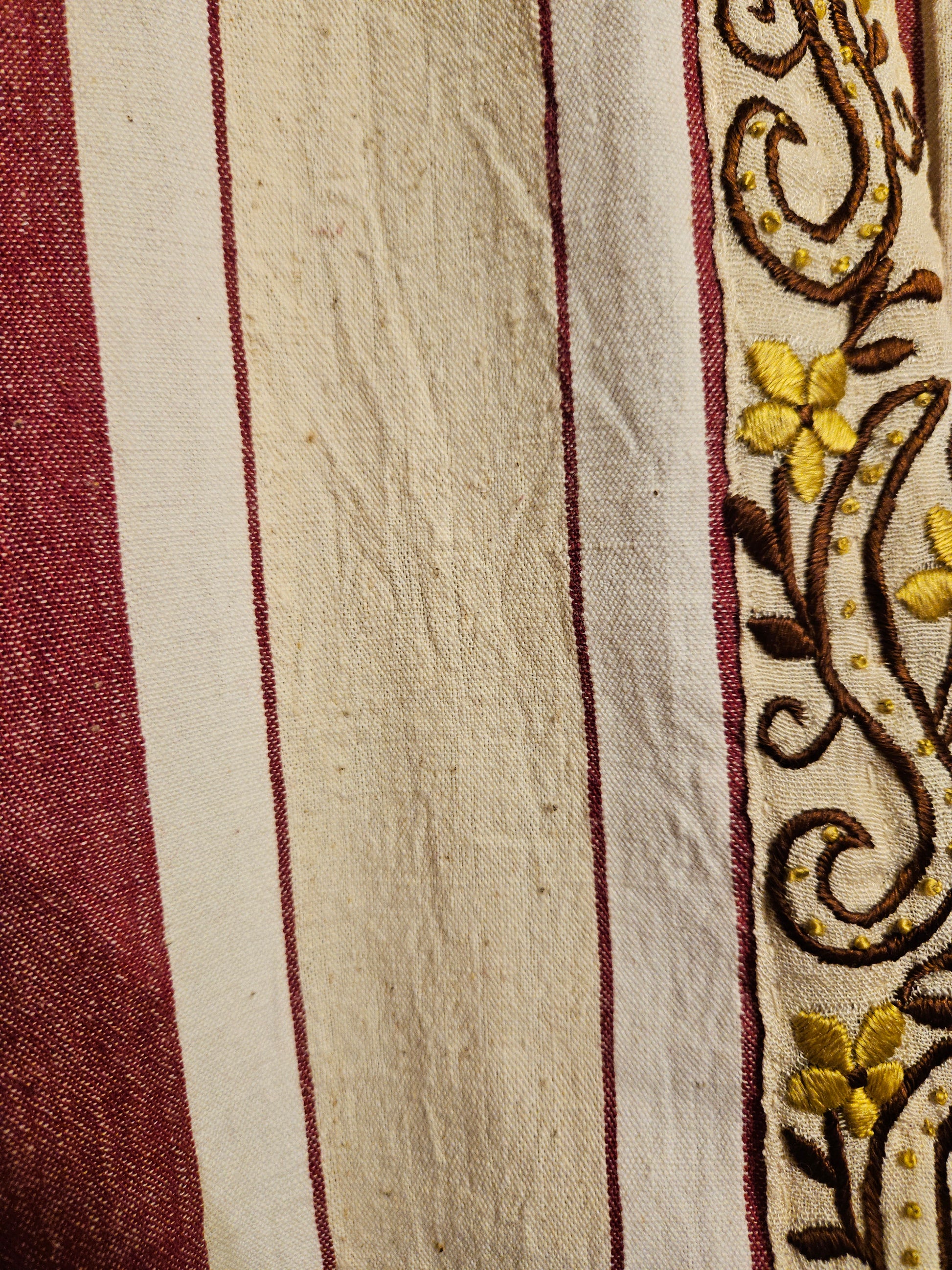 Dokuma Keten Üzerine Antika işlemeli